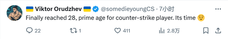 “终于到28岁了,这是CS选手的黄金年龄。是时候了。”