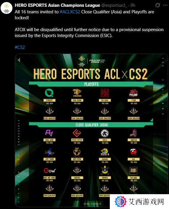 由玉麒麟联盟与HERO ESPORTS联合举办的CS2赛事Asian Champions League近期公布了本次赛事的受邀战队名单,本次赛事也将成为电竞世界杯的资格赛。