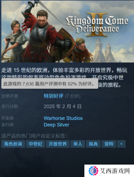 随着2月4日《天国:拯救2》正式发布,本作在Steam上的首日在线玩家人数就达到了16万人次。销量突破100万份,发布当天就实现了回本。高达92%的好评率,也说明了外界对这款游戏的评价有多高。