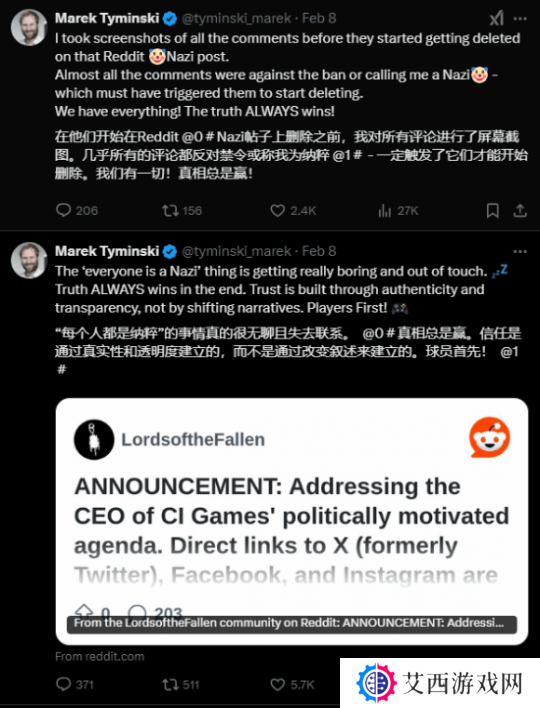 然而,此举很快引发了Reddit管理员的强烈反应,CI Games所有的官方团队成员,随后都遭到了禁言处理。