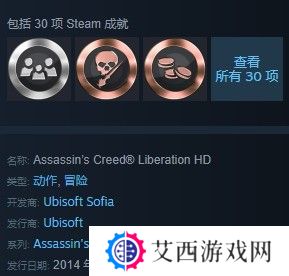 最近育碧为其多款游戏在Steam平台加入了成就系统,其中包括《刺客信条3:解放》。该作最初在PS Vita上发布,2014年1月16日在Steam上发售。