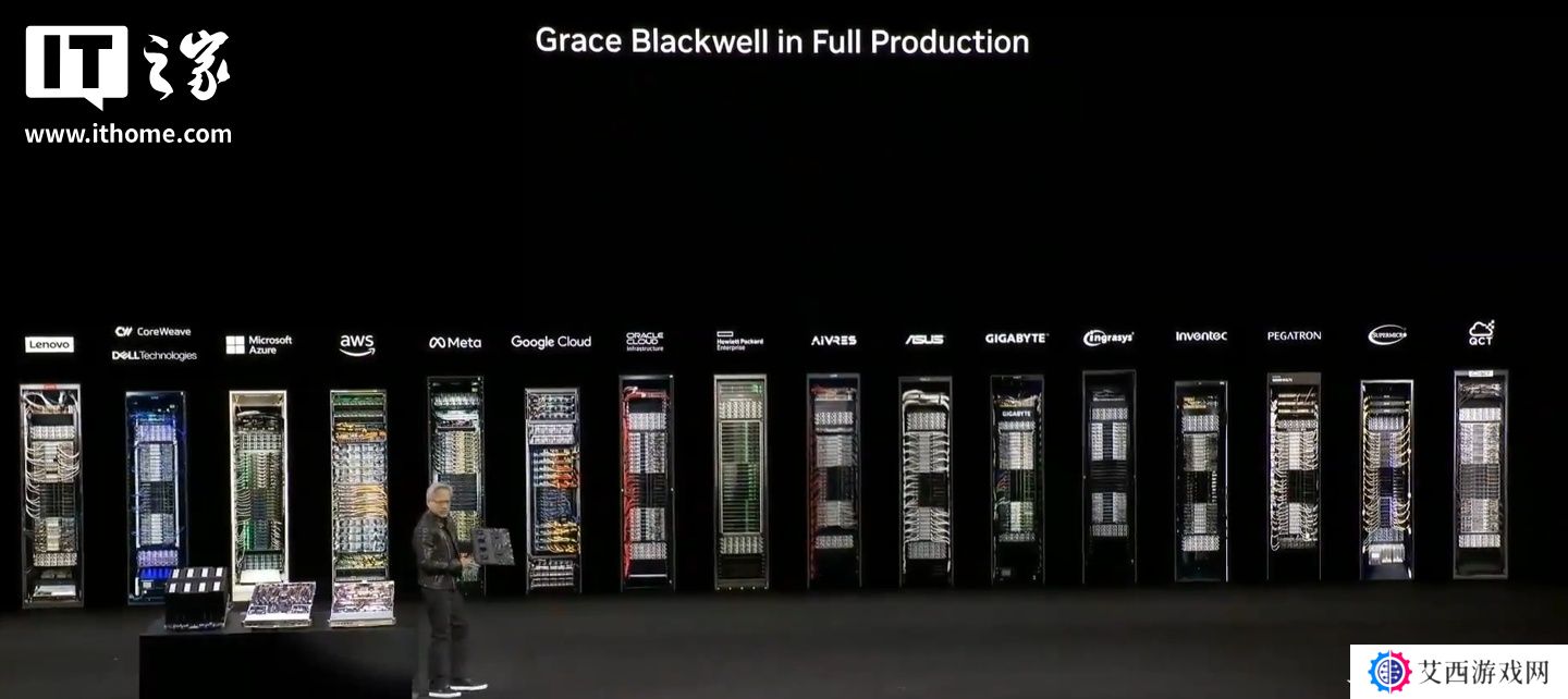 本站 3 月 19 日消息,英伟达 CEO 黄仁勋今日凌晨在 GTC 2025 大会上宣布,英伟达 Grace Blackwell 解决方案已全面投产。
