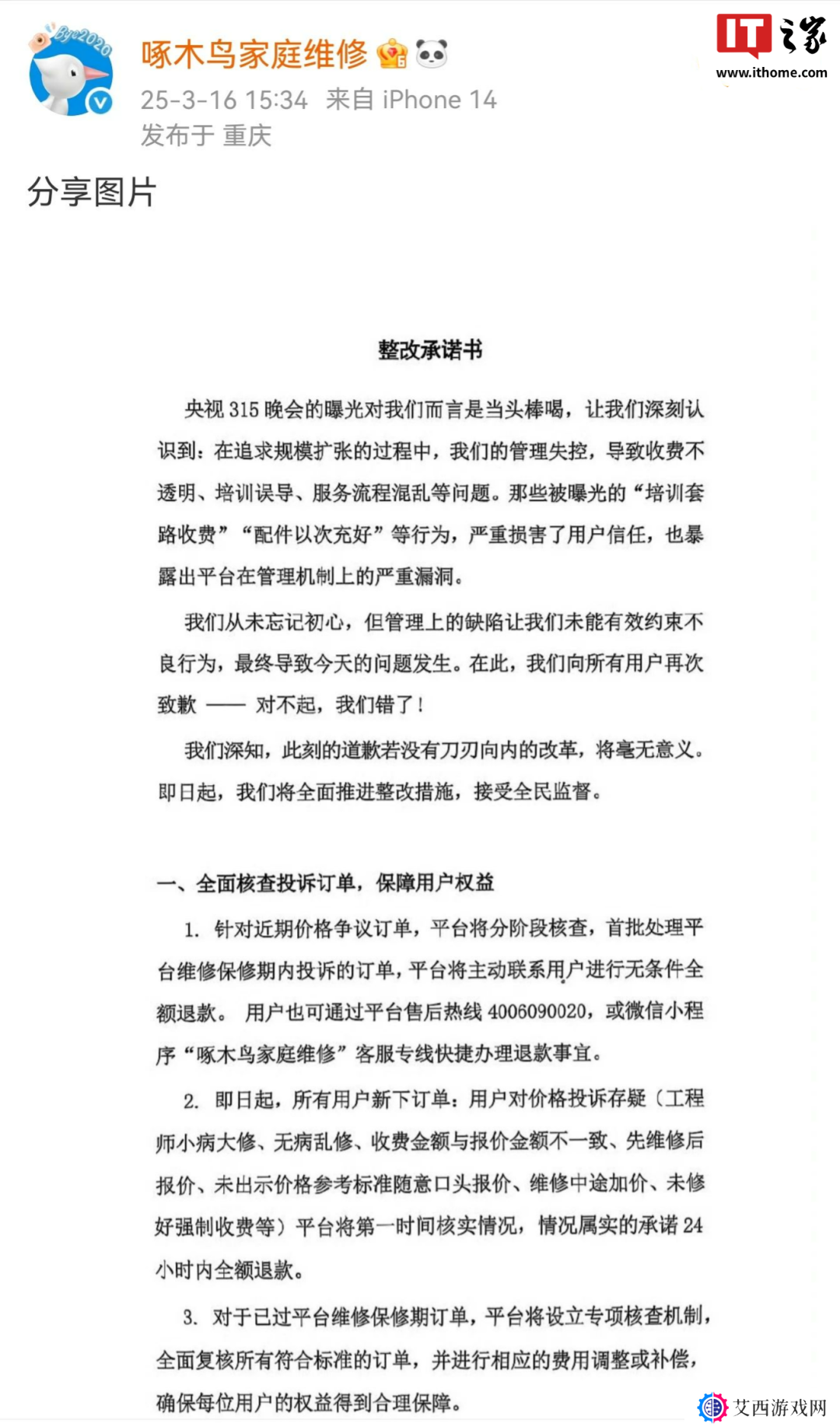 在昨晚(3 月 15 日)的晚会中,官方援引“啄木鸟家庭维修”例子,曝光家电维修乱来问题。