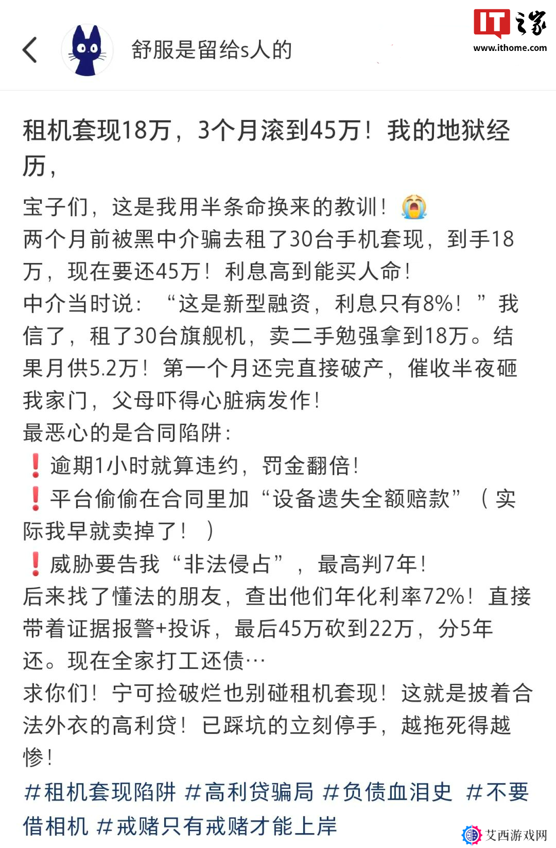 买机有陷阱,租机同样有套路,早在 2023 年 1 月 28 日的推文中,本站小编就曾给大家揭露过租机的套路。