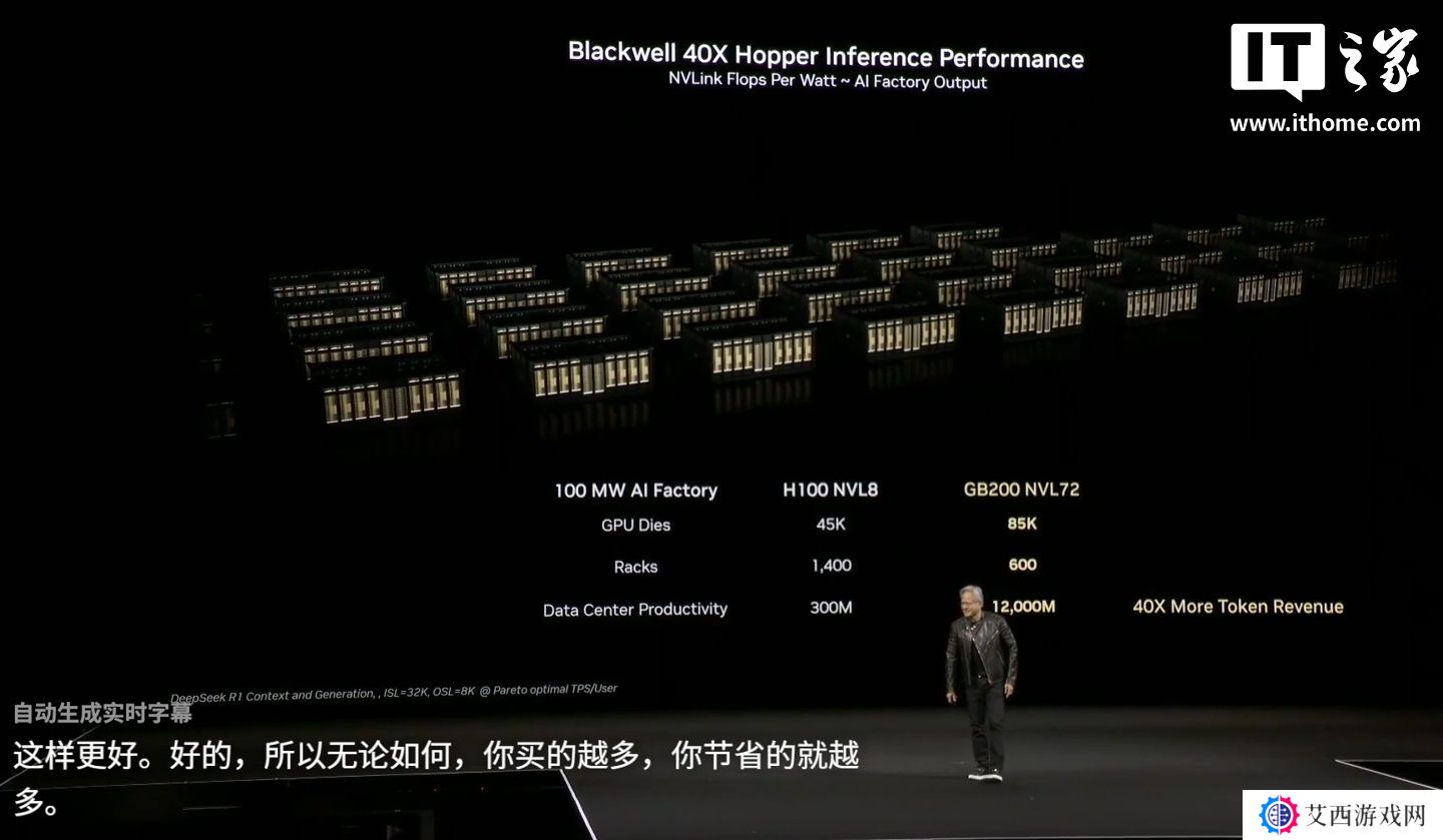 本站注意到,黄仁勋还打趣道,有了上述最新技术加持,搭建 AI 工厂的厂商“买得越多、省得越多”,总而言之就是掏钱吧。