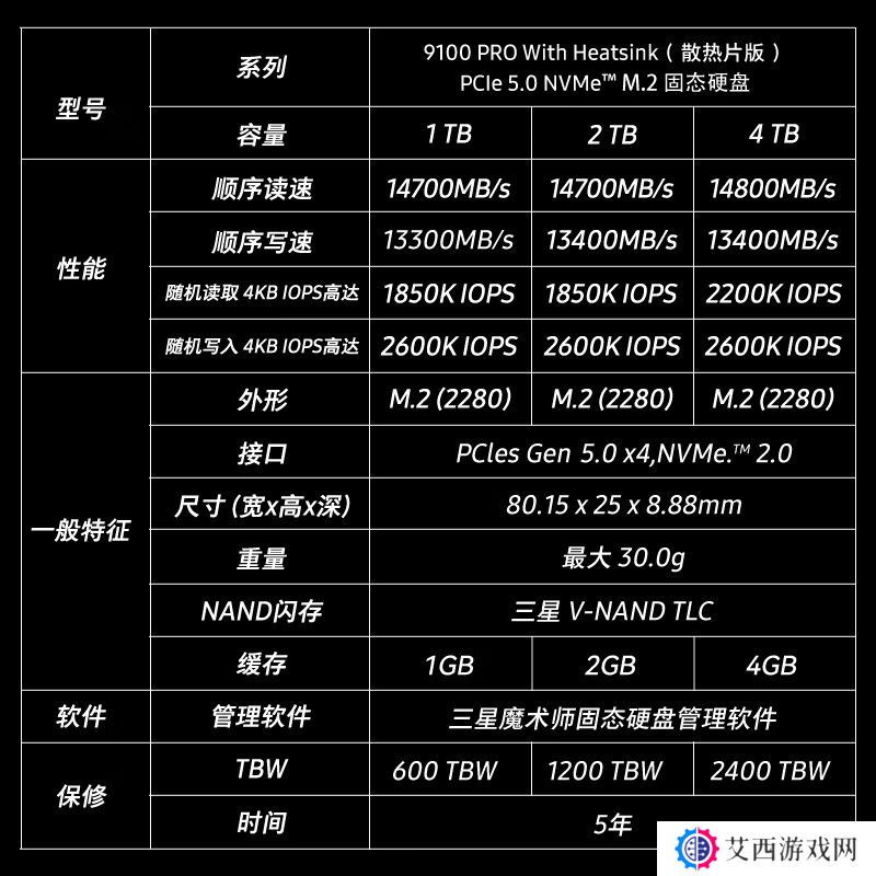 京东三星固态硬盘 9100 PRO With Heatsink 散热片版 1TB SSD1199 元直达链接本站注意到,三星京东自营店新上架了一款 9100 PROWith Heatsink 散热片版,目前仅有 1TB 型号可选,定价 1199 元。