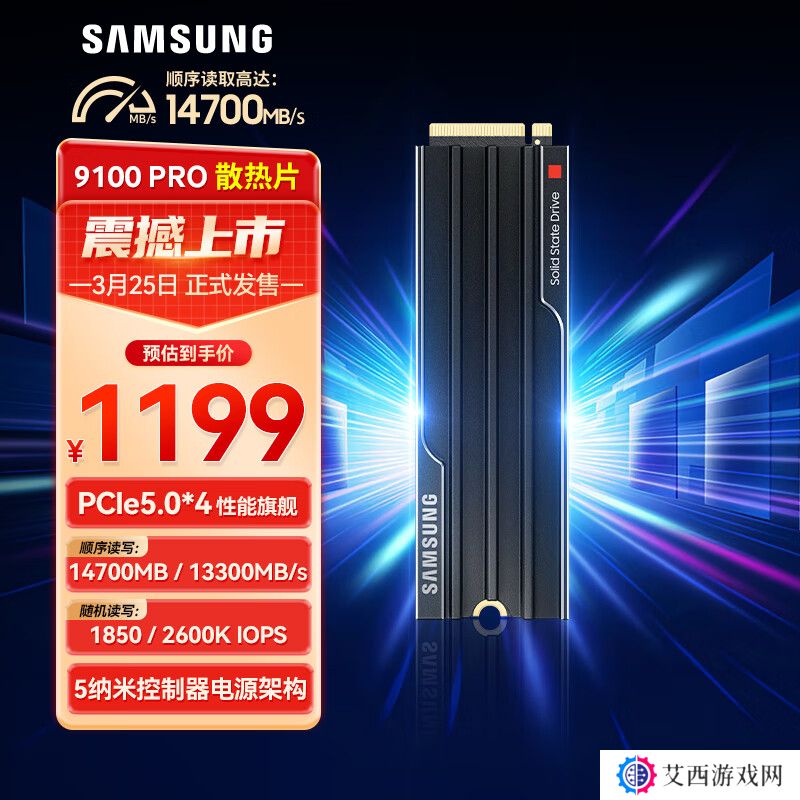 本站 3 月 26 日消息,三星 PCIe 5.0 固态硬盘产品 9100 PRO 已于 3 月 18 日正式发售,1TB 版本 1099 元。
