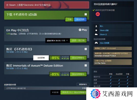 《不朽者传奇》日前正在Steam进行1.5折促销,原价248元,-85%,现价37.2元,支持简体中文。此次促销截止到2月11日。
