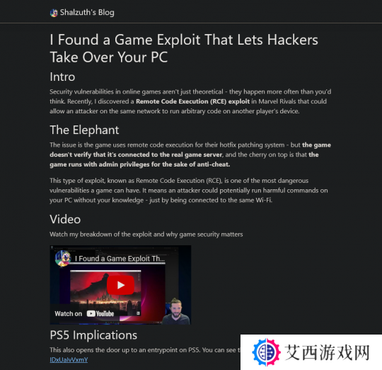 据称,该漏洞可以让黑客访问玩家的 PC 和 PS5。在报告中,开发人员使用了“远程代码执行热修修补系统”,但是当代码被执行时,“游戏不会验证”命令是否来自于真实的服务器。此外,由于游戏的反作弊需要管理员权限,该漏洞属于管理员权限下,导致黑客能够更加轻易的接管设备。