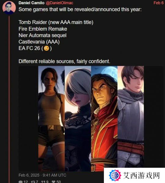 X上舅舅Daniel Camilo发帖爆料说,今年会有多个大作公布,他还刻意表示来自于不同的消息源,相当可靠: