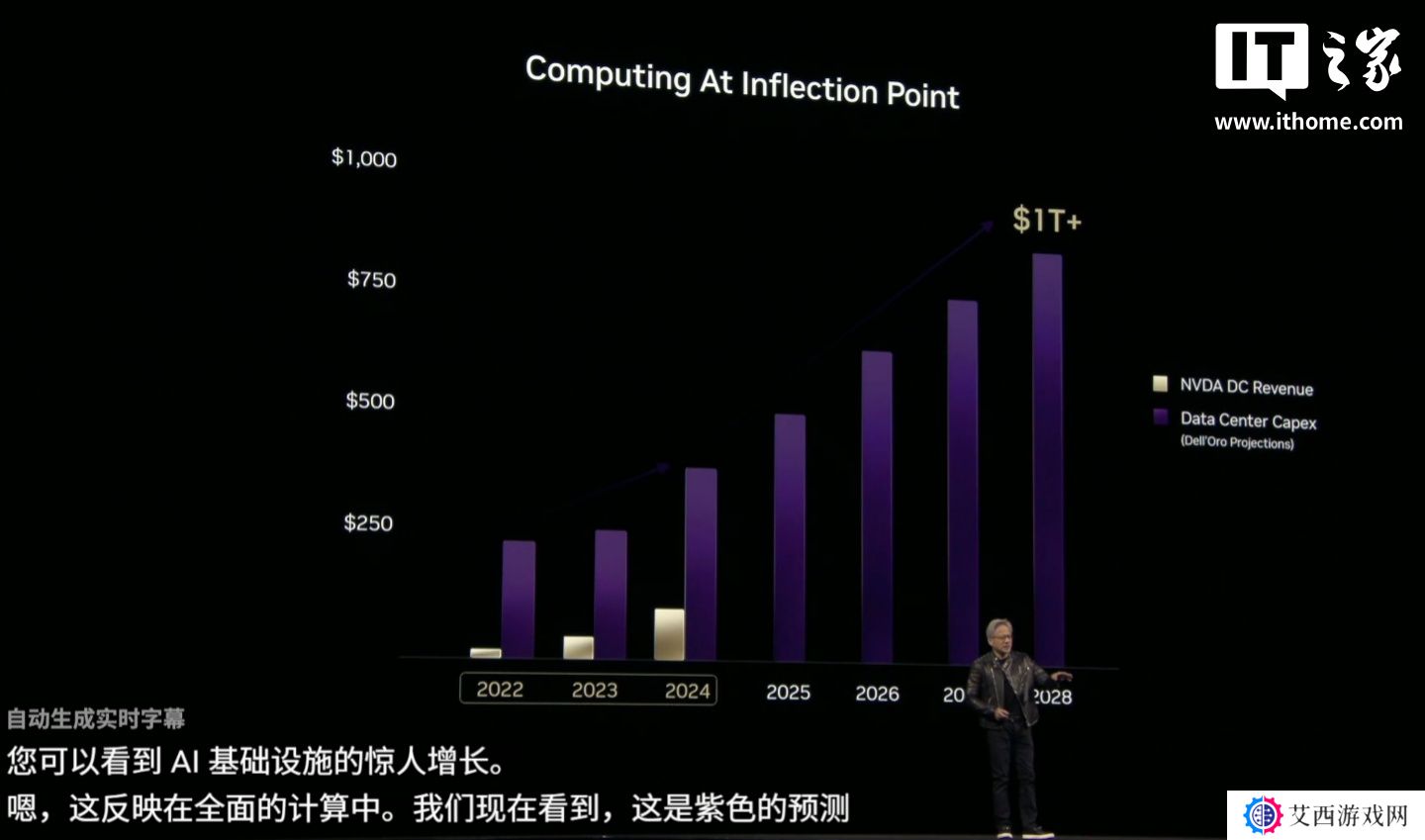 黄仁勋预计,数据中心建设将在 2028 年达到 1 万亿美元(本站备注:当前约 7.23 万亿元人民币)。