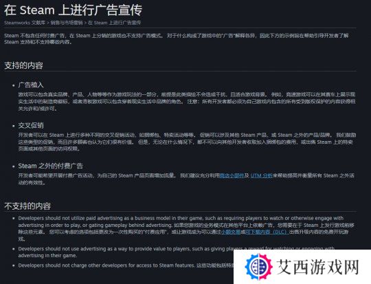 V社新规表示,虽然Steam允许交叉促销和广告植入,但不允许强迫玩家观看或参与广告才能玩游戏。开发商也不应将广告作为“向玩家提供价值的方式,例如给予玩家观看或参与游戏中广告的奖励”。
