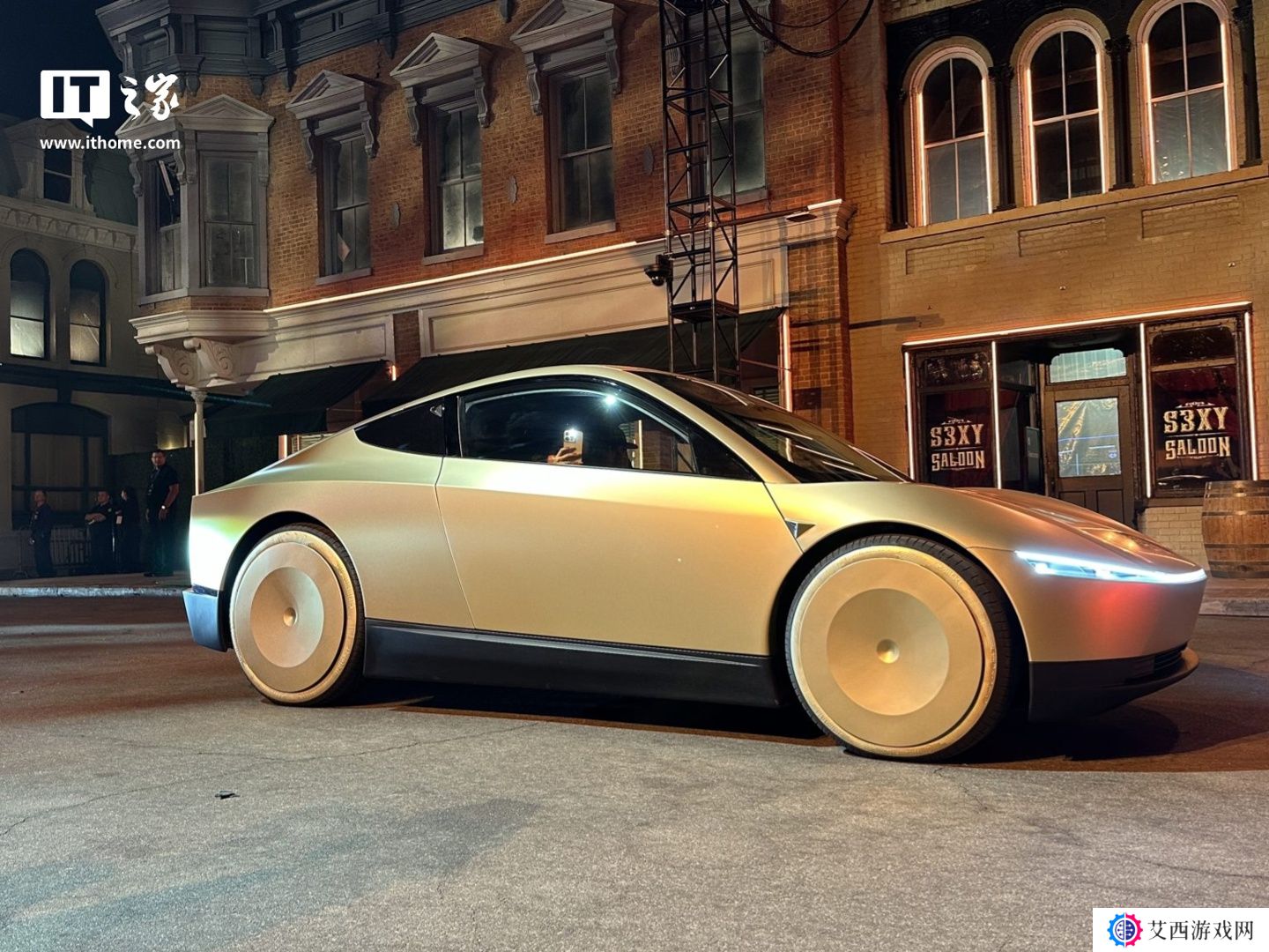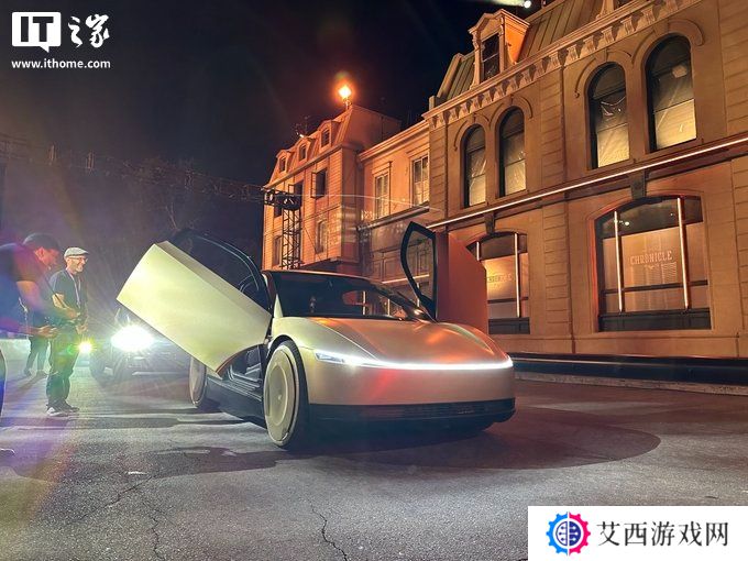 《特斯拉金色 Cybercab 无人驾驶出租车亮相得克萨斯超级工厂》