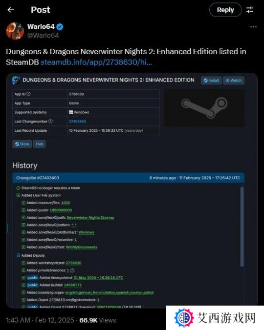 近日知名爆料推主“Wario64”在第三方数据网站SteamDB上,发现了《D&D:无冬之夜2增强版》的后台列表进行了更新。