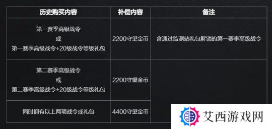 2月10日,暴雪公布了《守望先锋》国服第一赛季和第二赛季高级战令补偿,在《守望先锋》关服前购买过第一赛季或第二赛季高级战令的玩家,无论战令等级,每个赛季高级战令补偿2200守望金币,同时拥有以上两个赛季战令的玩家可以获得4400守望金币。