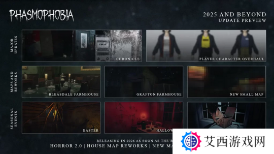 开发商 Kinetic Games 日前发布了合作恐怖游戏《恐鬼症》的 2025 年更新计划路线图。工作室通过官方网站分享了接下来的计划,包括 2 个重大更新、全新的地图,以及季节性活动。