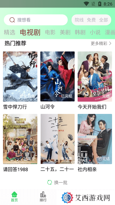 1、安装完成后,打开应用,主页展示当前热播剧集,直接点击观看。