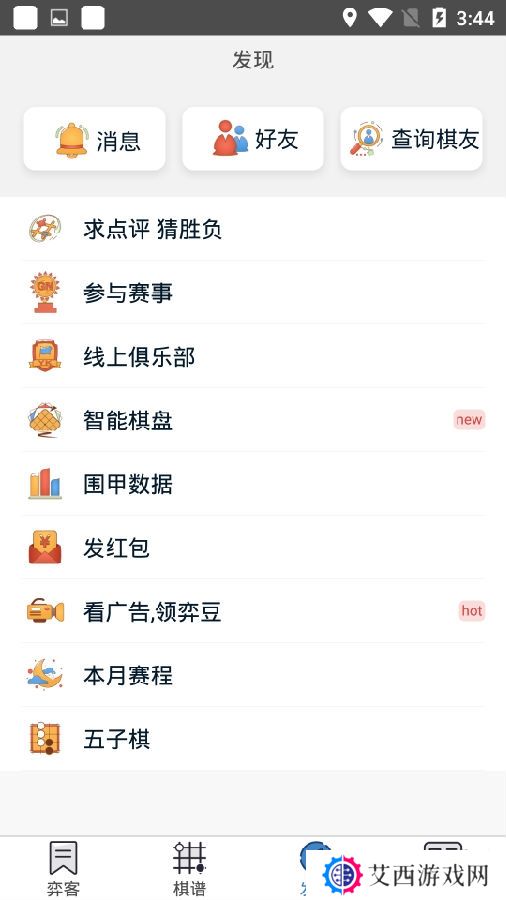 弈客围棋对弈大厅版,是一款可以对弈围棋并交友的软件。此版本中加入了更多有意思的功能,不仅可以学习各种围棋技巧,还能参加各种比赛,为用户赢得更多乐趣。棋友之间可以自主创建比赛,组织报名,进行智能赛事编排,成绩确认,展示等功能。