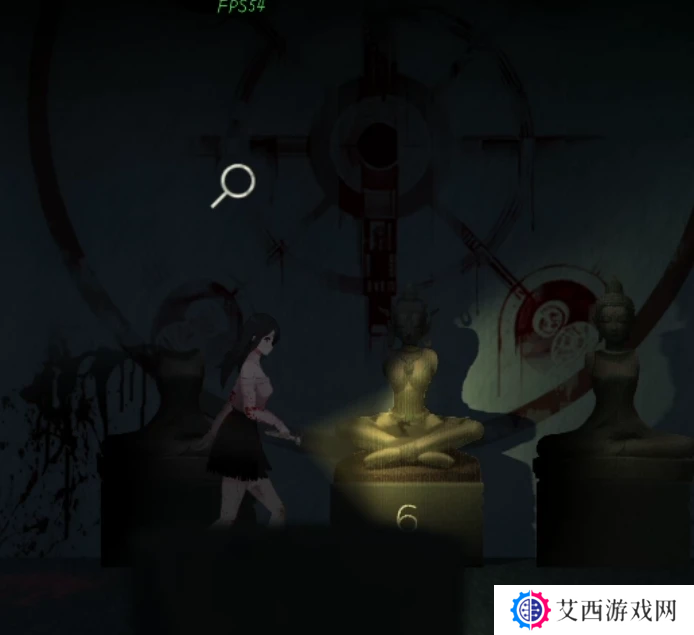 继续往右走门的右上角有个通风口,调查一下提示要梯子,然后走到最右边进入房间,把房间里的三个雕像的头和手都取下来,注意中间的雕像下面写了个6.这也是后面的线索,继续往右走有个机器,查看一下在中间位置拿到一本小册子是踩月亮习俗,再往右一点还有个黑色方块是录音笔,打开有奇怪的文件,这些都是剧情道具解谜用不到哦~