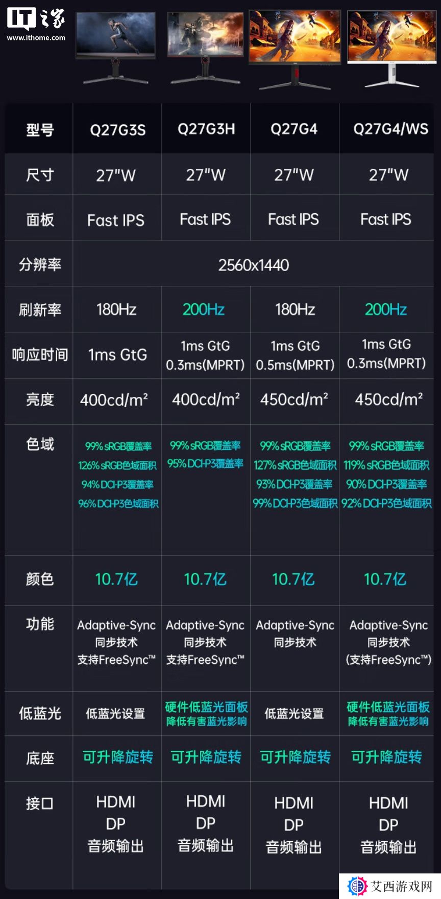 本站 3 月 28 日消息,AOC旗下一款型号为“Q27G3H”的27英寸显示器现已在京东开售,该显示器主打“2K 200Hz”,定价为1149元,国补后976.65元。