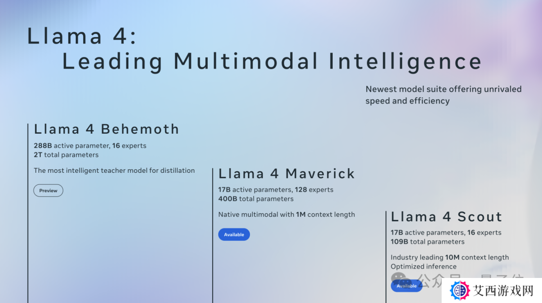 这是 Meta 首个基于 MoE 架构模型系列,目前共有三个款: