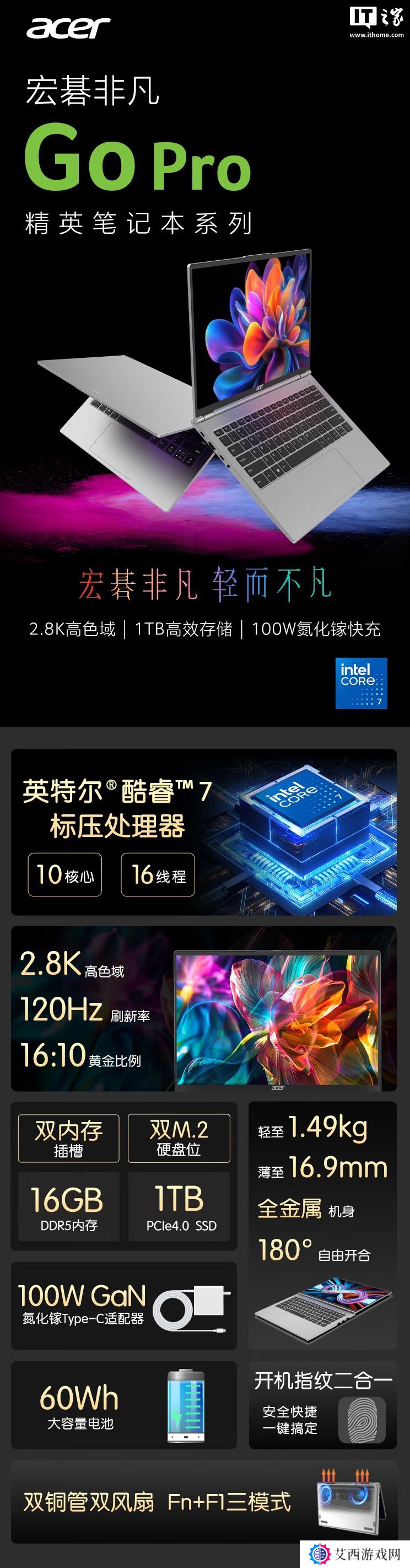 本站 3 月 31 日消息,宏碁现已在京东上架2025款非凡Go Pro笔记本,该机采用“Core 7-240H + 32GB RAM + 1TB存储空间”规格,首发价为5299 元,将于4月10日首销。